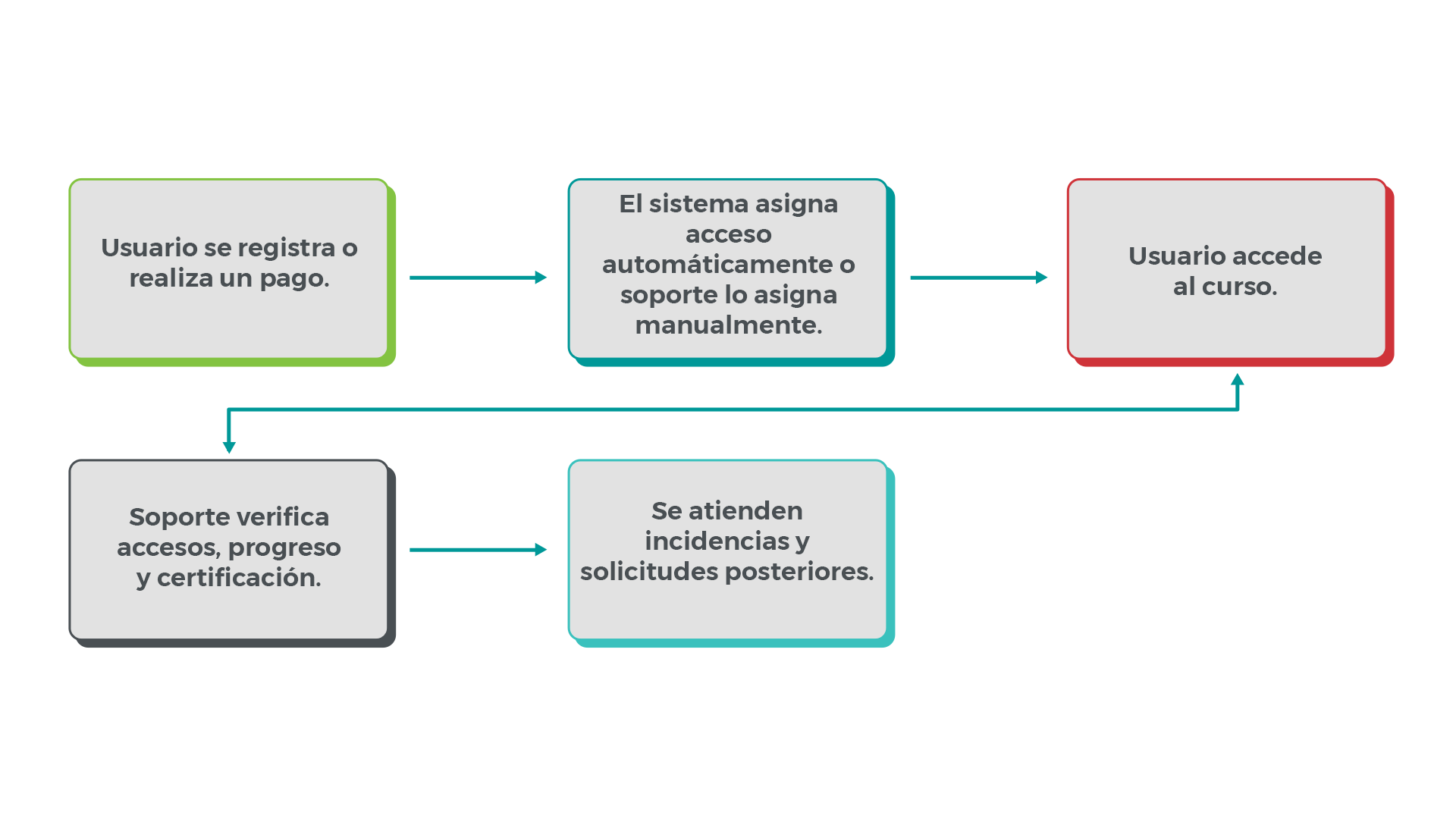 Procedimiento para atender solicitudes de usuarios una vez finalizado un curso, relacionadas con acceso a contenidos, certificados, consultas administrativas o aclaraciones posteriores.